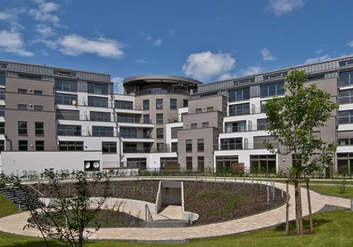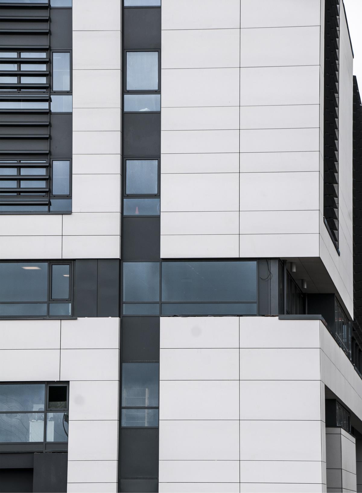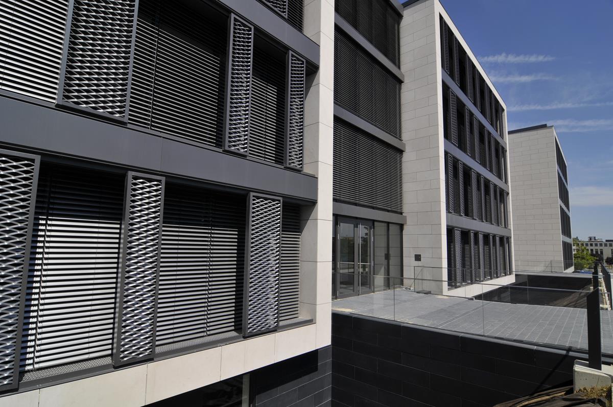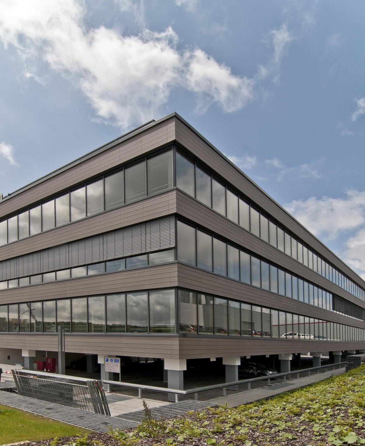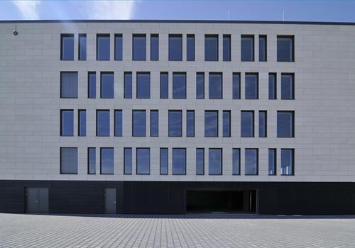 Im Gewerbebereich arbeiten wir vor allem mit vorgehängten, hinterlüfteten Fassaden. Eine Luftschicht trennt die Außenfassade von der äußeren Dämmschicht des Gebäudes und schützt so vor Feuchtigkeitsschäden. Nach außen schützt der Naturstein optimal vor Witterungseinflüssen.